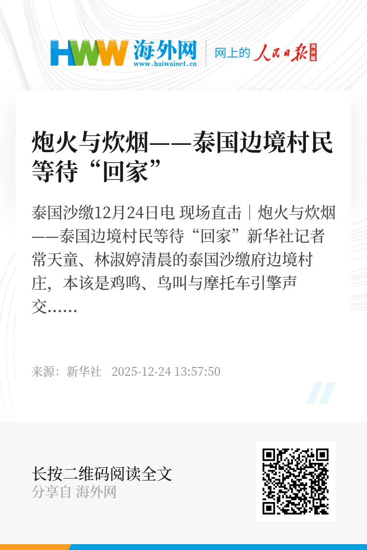 新华社泰国沙缴12月24日电 现场直击|炮火与炊烟——泰国边境村民等待“回家”